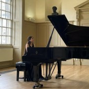 Christina Maria Koti is a London-based Greek pianist who recently completed an MMus in Piano Performance under Professor Deniz Gelenbe-Arman at Trinity Laban Conservatoire of Music & Dance with the Trinity College of Music scholarship. Christina Maria graduated from the University of Glasgow with a first class honours Bachelor of Music degree, and she has taken part in international music festivals and competitions such as the Gnessin Academy Summer Festival, the Concorso International Pianistico citta Villafranca di Verona, the Glasgow Music Festival, and the Dinu Lipatti International Piano Competition. She has appeared in collaborative piano recitals and concerts in the UK, France, Italy, Russia, and Greece. Christina Maria has participated in masterclasses with Pascal Rogé, Paul Roberts, Aaron Shorr, Natalia Mihailidou, Petras Geniusas, Dimitris Toufexis, Martino Tirimo and Tatiana Svistunova. She is passionate about chamber music and art song and is currently a SongEasel Young Artist with her duo partner, baritone Jared Andrew Michaud. Together, they have performed in masterclasses with Dame Sarah Connolly and Dr. Emily Kilpatrick, as well as taking home first prize from the 2022 Elisabeth Schumann Lieder Duo Competition and the 4th International SGSM Singing Competition, Lieder Duo category in Novo Mesto, Slovenia. She has worked with vocal coaches such as Simon Lepper, Eugene Asti, Helen Yorke and Christos Marinos. She has been a finalist for the English Song Festival 2021 and Lilian Ash French Song Competition 2021. She has recieved a Piano “Diploma” with Distinction (arista pampsiphi) from the Dodekanesian Conservatoire in Greece.